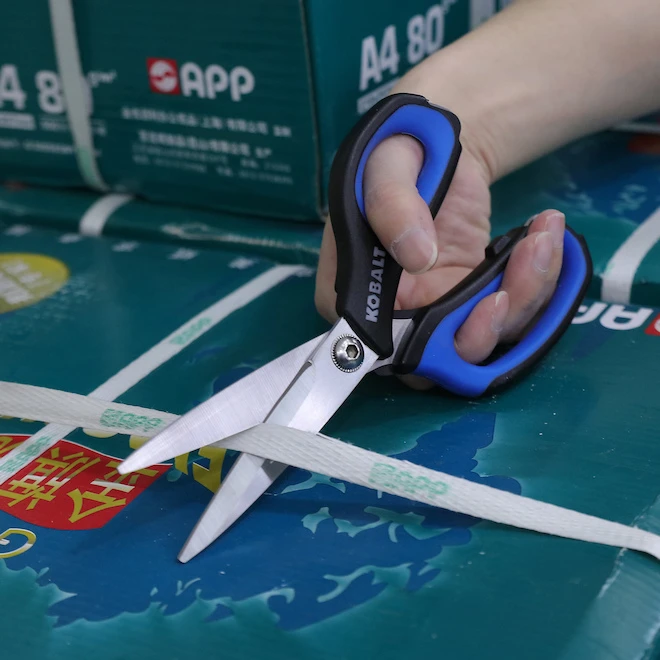 This 2-Piece Kobalt Scissor Set is a handy addition to your toolbox, crafting supplies, or general-purpose gear around the house. They have heavy-duty stainless steel blades that cut efficiently and are durable for the long haul. Their molded handles are comfortable in the hand. Scissors can also be sharpened.