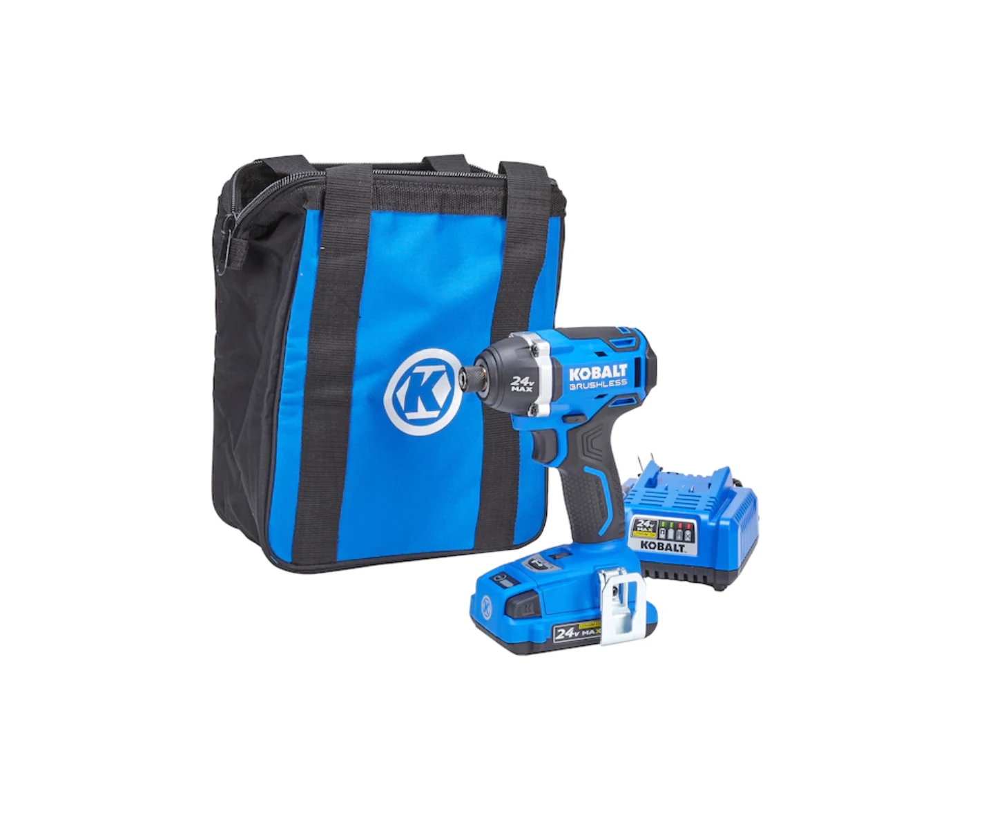 - Kobalt 24-volt max 1/4-in cordless impact driver comes with a 24-volt max high-capacity Li-ion battery, charger, belt clip, single-ended driver bit, bit holder and soft bag