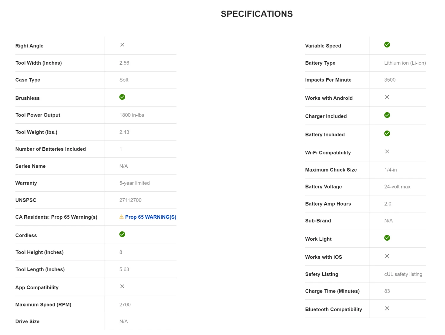 Built to last with a highly efficient brushless motor, this quarter inch impact driver delivers up to 1800-in-lbs of torque making it powerful enough for the biggest jobs.