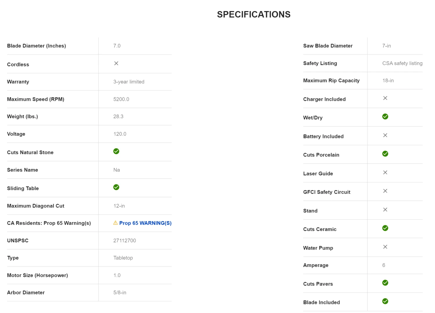 - 7-In sliding tabletop tile saw features an innovative smooth sliding table that delivers 18-in of rip cutting capacity, allowing users to cut 12-in by 12-in tile diagonally with a maximum depth of cut of 1-1/4-in